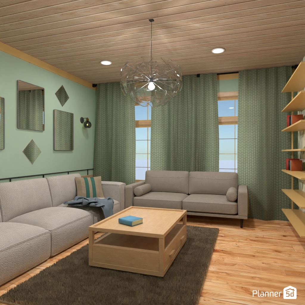 设计一个带有镜面墙装饰的客厅。