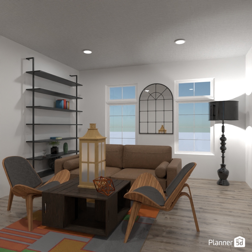 设计一个带有镜面墙装饰的客厅。
