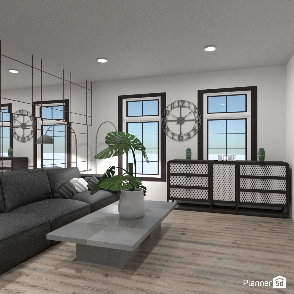 设计一个带有镜面墙装饰的客厅。