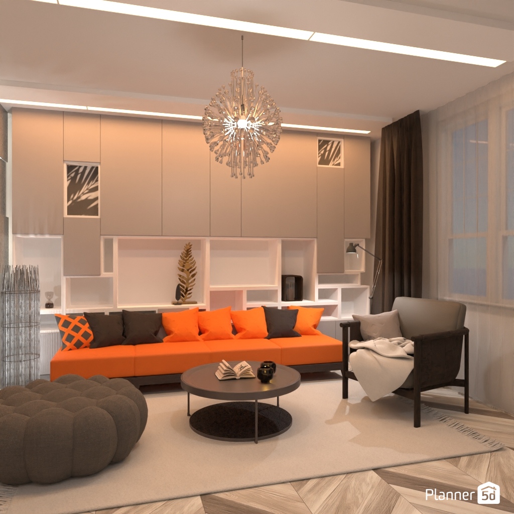 围绕橙色沙发设计您的室内装饰。