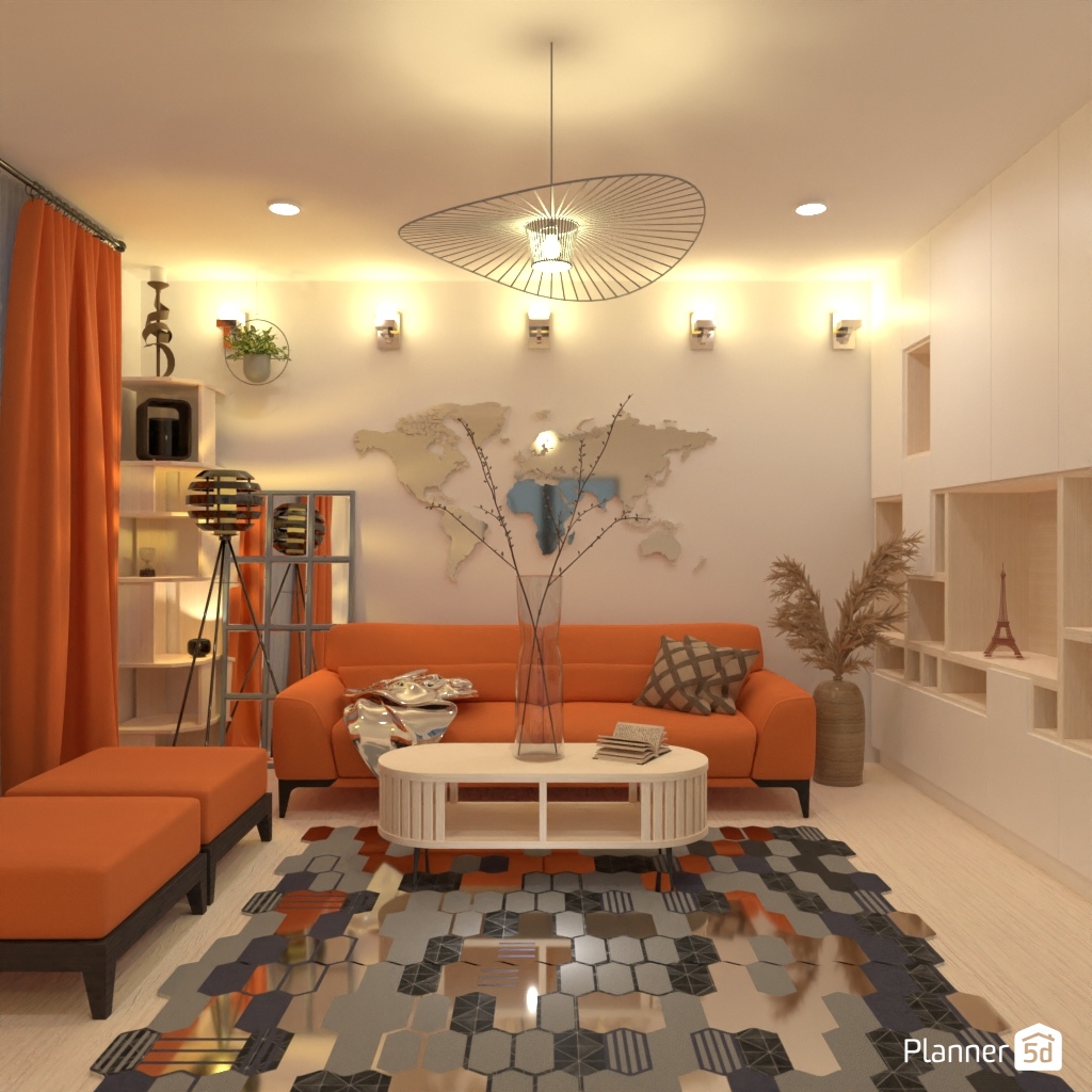 围绕橙色沙发设计您的室内装饰。