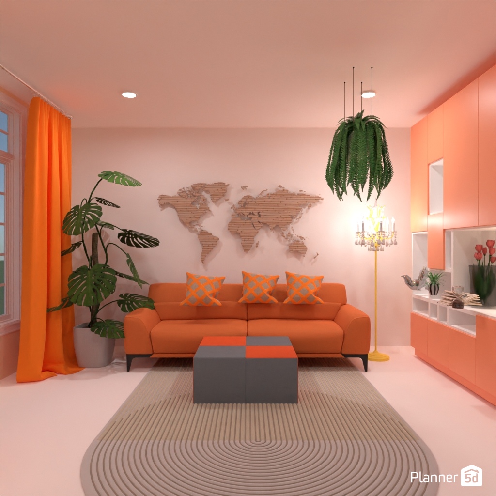 围绕橙色沙发设计您的室内装饰。