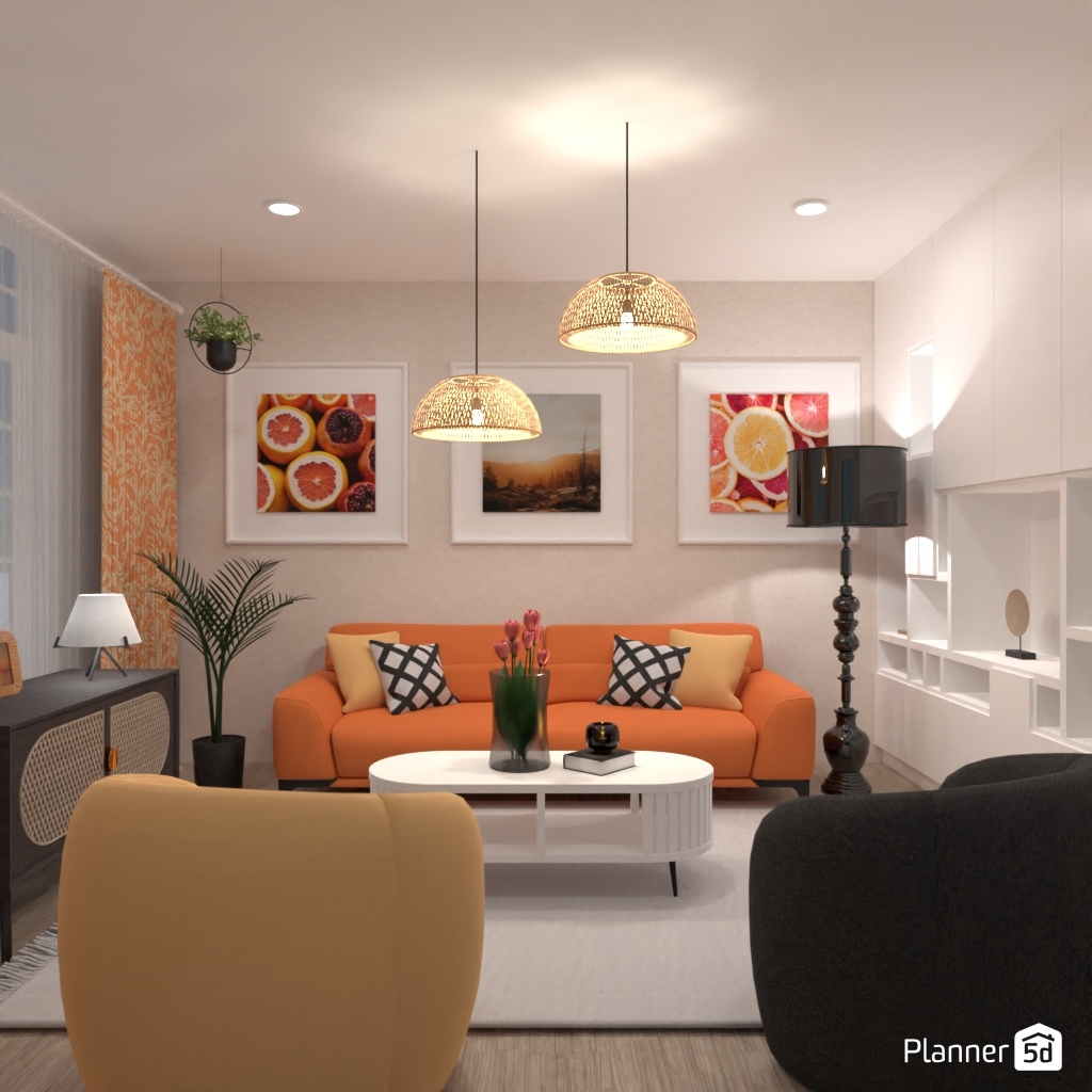 围绕橙色沙发设计您的室内装饰。