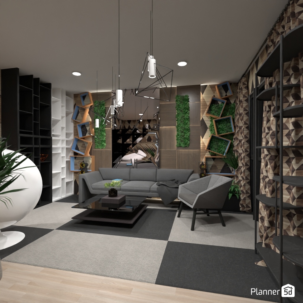 用不同的几何形状设计一个客厅内部。