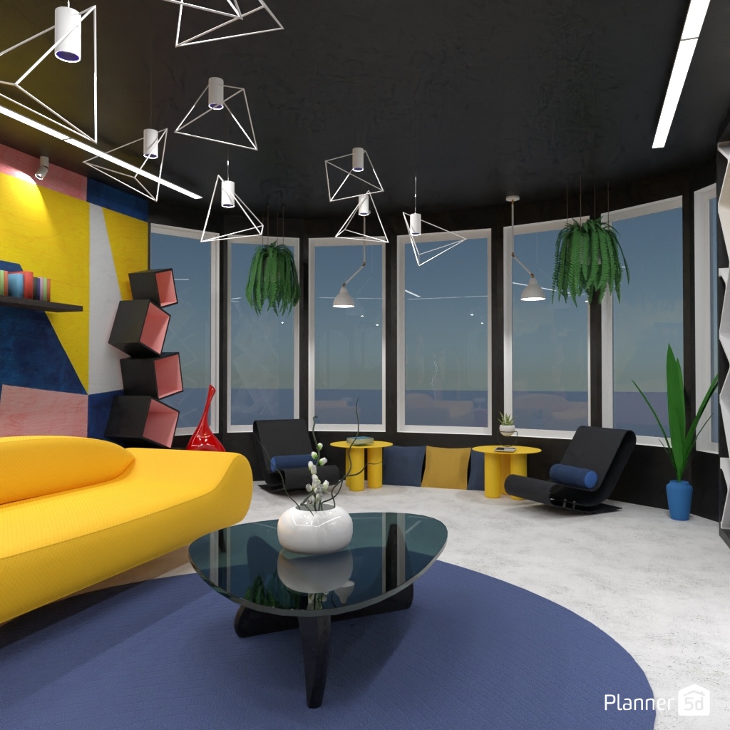 设计一个未来主义客厅:霓虹灯光,造型家具。