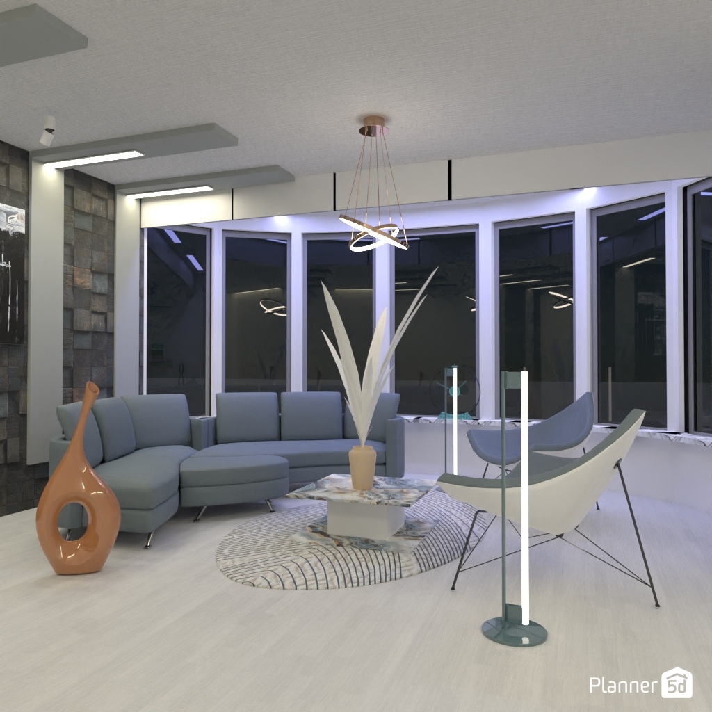 设计一个未来主义客厅:霓虹灯光,造型家具。