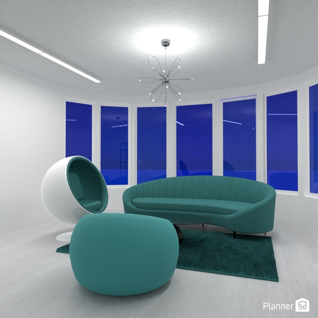 设计一个未来主义客厅:霓虹灯光,造型家具。