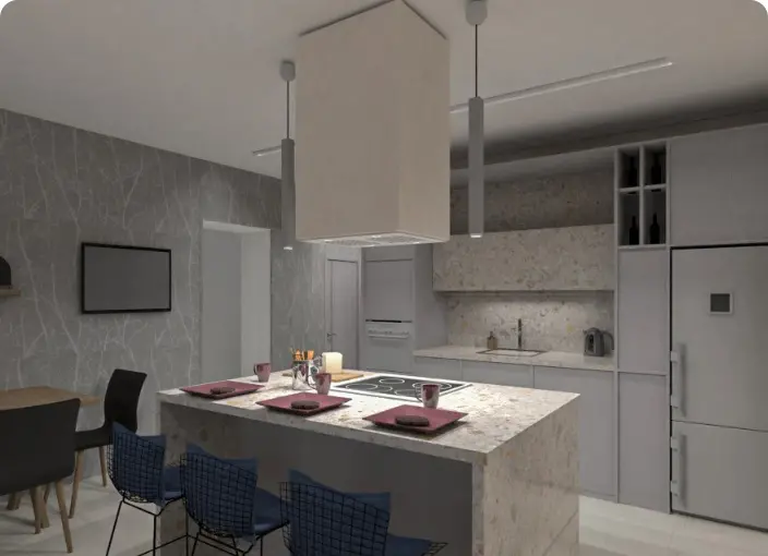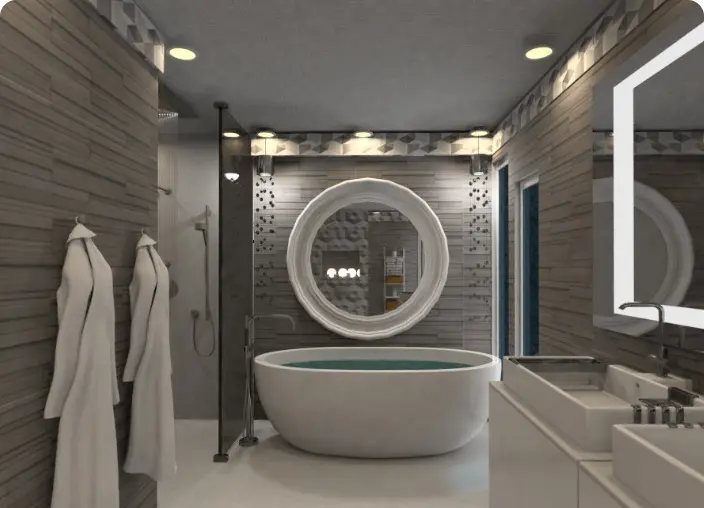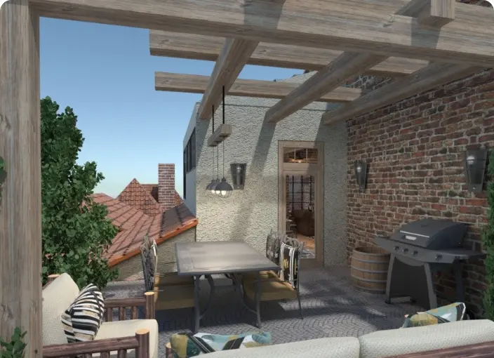 El paso final de tu proyecto es crear una vista 3D. Con Planner 5D, no hay necesidad de pedirle a un profesional que lo haga por ti, podrás crear vistas 3D hiperrealistas fácilmente. Ya tienes todas las herramientas necesarias para transformar un plano de planta 2D en un proyecto 3D fotorrealista.